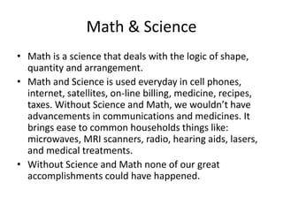 This document discusses using podcasts in a math and science classroom. It provides examples of how students can create podcasts to explain their findings for math homework and science lab reports instead of written work. This allows students to better articulate their understanding through speaking. The document also includes a sample lab report explanation on Newton's First Law of Motion that students could explain through a podcast. It argues that podcasts put less pressure on students and give teachers more insight into students' thought processes.