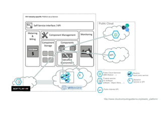 The document discusses the democratization of computing power, highlighting that even small groups can access capabilities once reserved for large corporations. It outlines different service models such as IaaS, PaaS, and SaaS, emphasizing their components and benefits. It also mentions key factors like standardization, customizability, and lifecycle measurements.