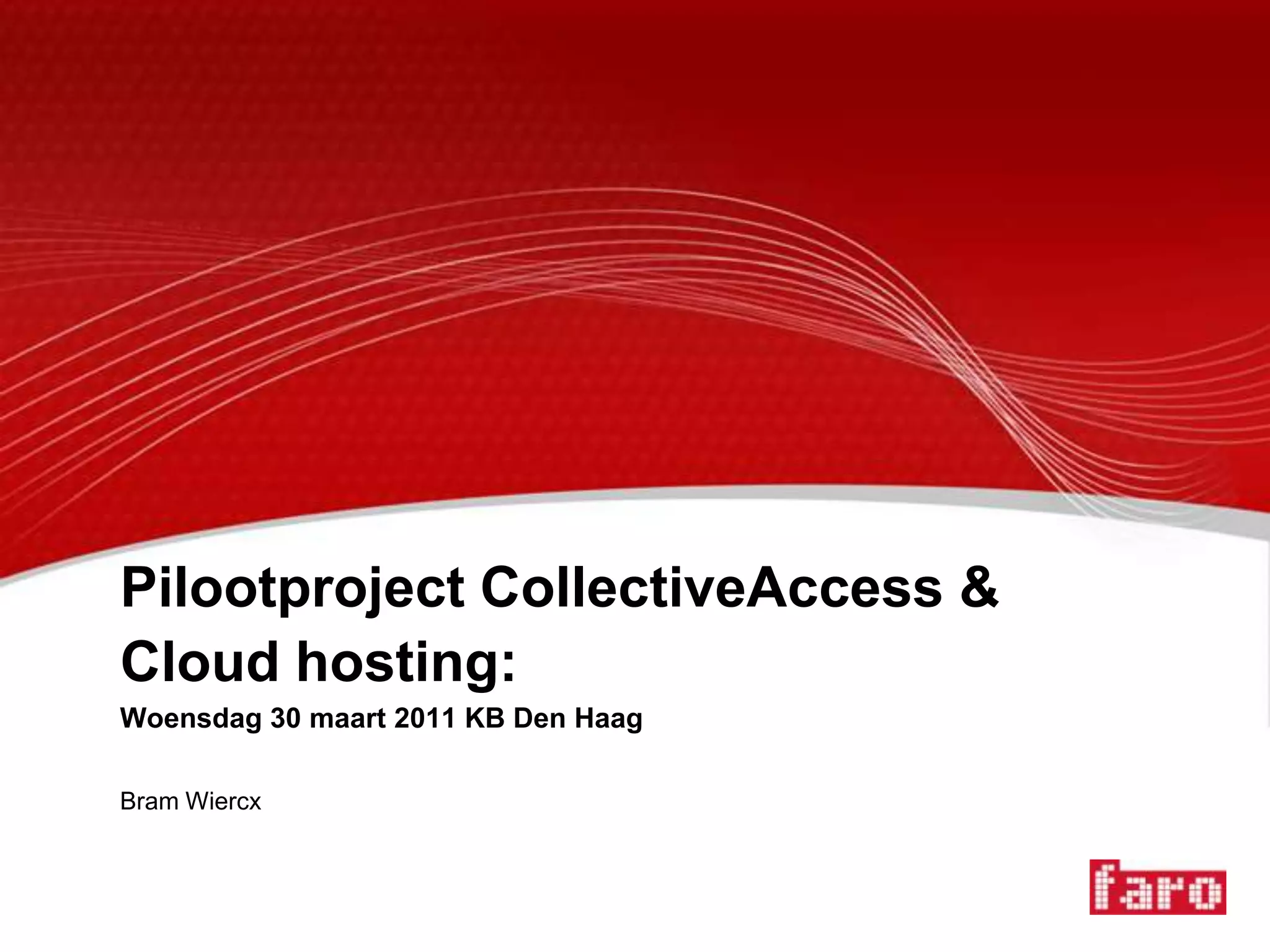 Oorspronkelijke missie vanhet project 7/11/2008 “ FARO speelt met het idee om samen met enkele partners (erfgoedcel, museum...) een pilootproject (test) op te starten waarbij we CollectiveAccess, een open-sourcecollectiebeheerpakket voor musea, archieven en digitale collecties gaan opzetten op een cloudhosting infrastructuur. Door het gebruik van Open-Source technologie zijn organisaties minder afhankelijk van software waar bedrijven eigenaar van zijn. CollectiveAccess is uitgebracht onder de GPL licentie. De cloudhosting infrastructuur voor de storage & hosting kan een cost-efficiënte manier zijn om collecties op lange termijn beschikbaar te houden. De schaalbaarheid, transparante kosten, lage instapkosten en flexibileit zijn enkele voordelen. “ http://www.faronet.be/blogs/bram-wiercx/pilootproject-collectiveaccess-cloud-hosting