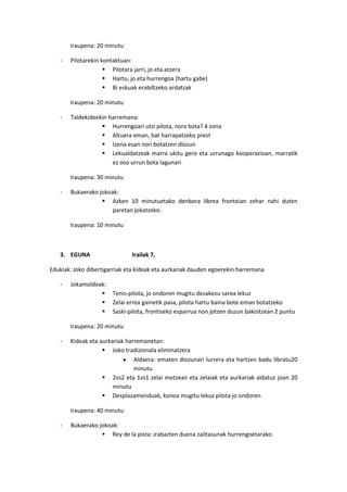 Edukiak: Joko dibertigarriak eta pilotaren kontaktuarekin eta taldekideekin harremana
