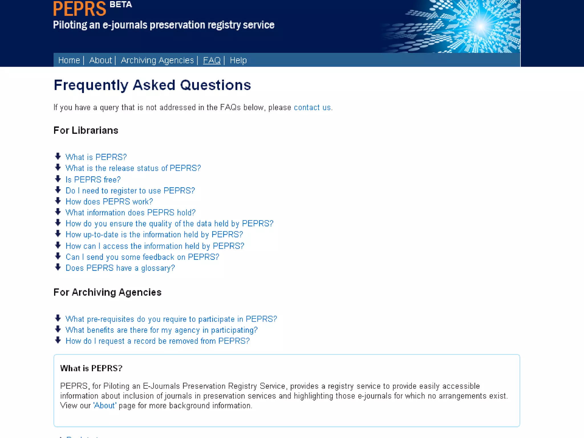 The document discusses the PEPRS project, which aims to address the challenges of e-journal preservation by establishing a registry to track which e-journals are archived and how. It highlights the complexities of copyright and ownership associated with digital content, alongside various preservation agencies involved in the initiative. Additionally, it outlines the project's phases, funding sources, and the technological frameworks in place for archiving digital scholarly resources.