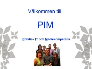 Examination Examination skeri kommunens regi Examinationsuppgift 1, 2 och 3 skickas in till examinator Examinationsuppgift 3 innebär också ett examinationsseminarium på ca 2,5 timme. Diplom delas ut av kommunal examinator Examinationsuppgift 4 skickas in till examinator. Kommunalt seminarium som ger PIM-nål i silver Examinationsuppgift 5 presenteras på ett nationellt seminarium som ger PIM-nål i guld. Möjlighet till publicering av uppgift.