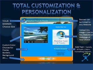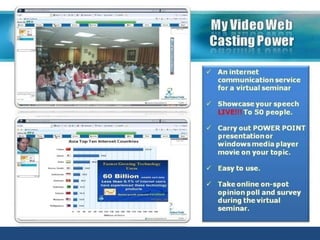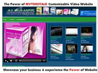 2) The products allow users to create personalized video emails and websites to promote their business or share information. Features include customization, video uploading, and global access.