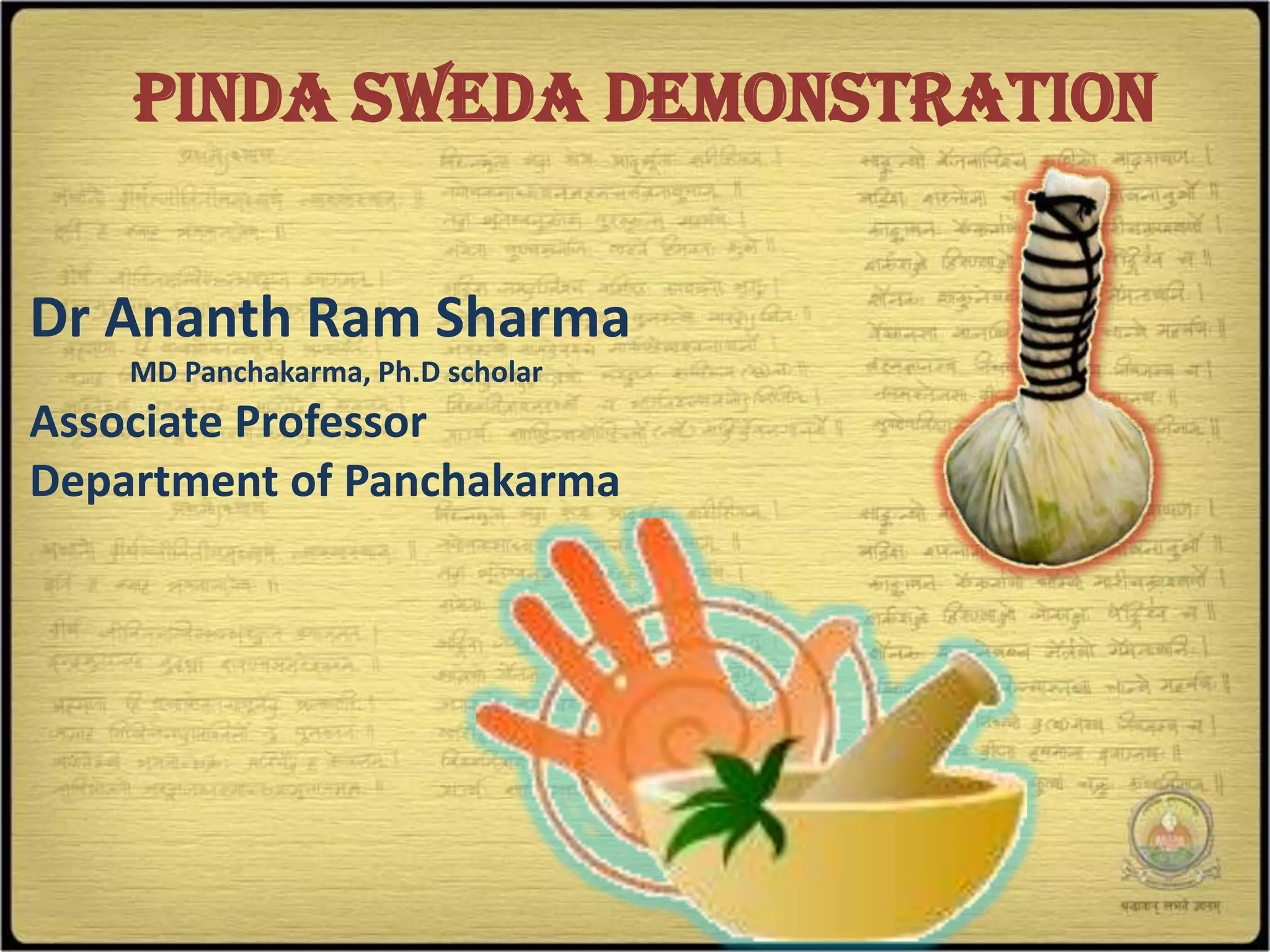 - Shashtika Shali Pinda Sweda using boluses made from cooked rice.