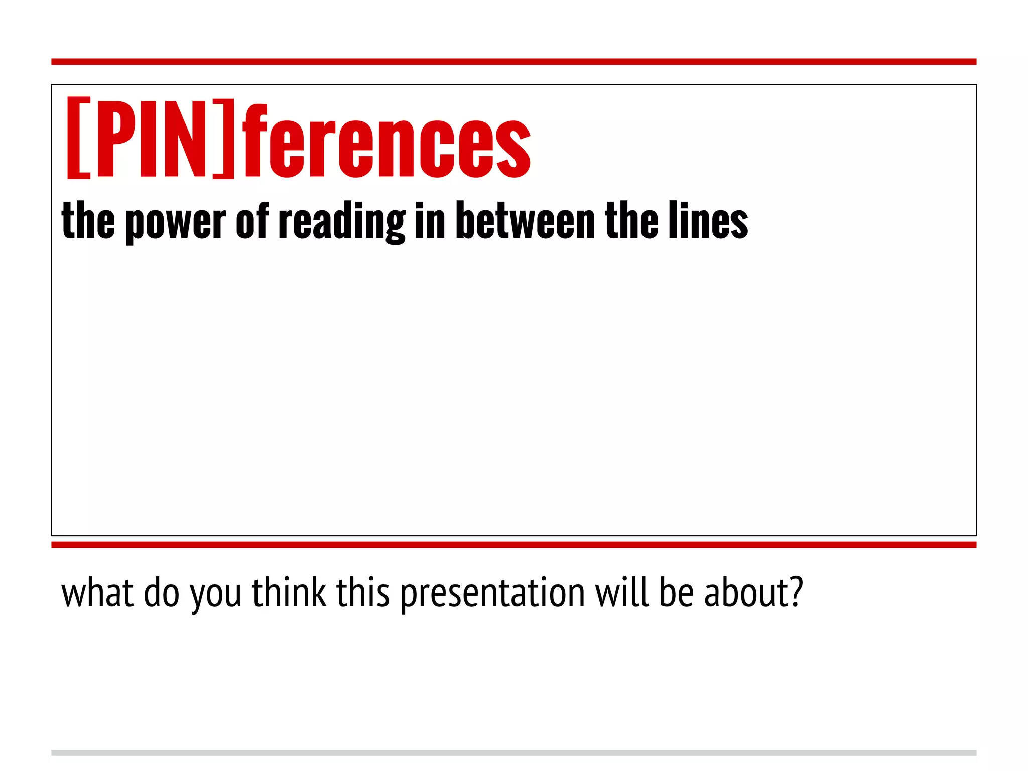 This document discusses making inferences when reading. It explains that inferences involve using clues in the text and your own knowledge to figure out information not directly stated. The document provides examples of productive inferences versus ill-informed ones. It emphasizes that making inferences is important when reading graphic novels since much of the story is told through visuals rather than dialogue. Readers are asked to analyze a scene from American Born Chinese and discuss what characters may be thinking based on visual clues. The document also distinguishes between inferences, which rely on available information, and predictions, which involve guessing what may happen in the future based on clues.