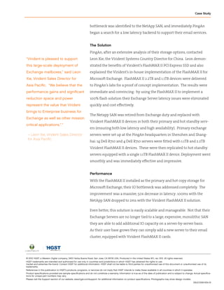 PingAn is a large insurance company in China that saw a significant increase in email latency after upgrading their Microsoft Exchange Server. They deployed Virident FlashMAX II PCIe SSDs as the storage for Exchange Server across multiple locations to address the latency issues. This resulted in a massive 50x decrease in latency from over 100ms to 2ms, dramatically improving the user experience and productivity.