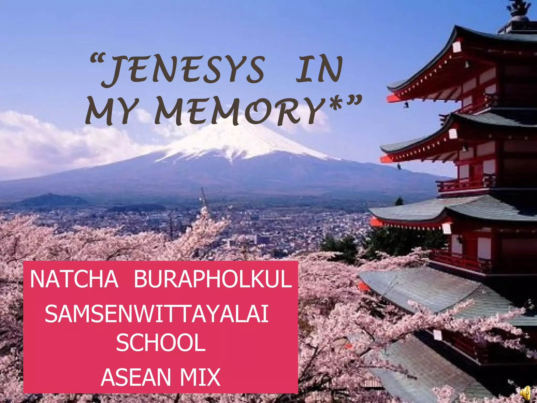 The document summarizes Pink's experiences from Thailand representing her country in the JENESYS program in Japan. She shares memories from visiting sites like Kyoto and Hiroshima, participating in cultural events, staying with a host family, and making friends from different countries. The JENESYS program gave her valuable cultural experiences and realizations that she will never forget.