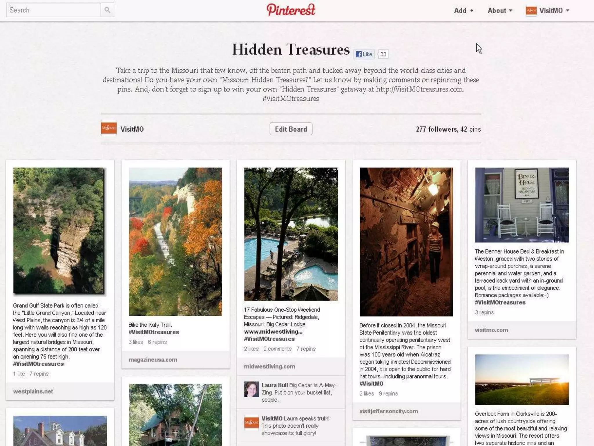 The document provides an overview of Pinterest as an image-based bookmarking and social media tool, highlighting its user demographics and growth in popularity. It emphasizes the engagement Pinterest users have compared to other social networks and discusses strategies for tourism agencies to leverage the platform for increased interaction and visibility. Additionally, it mentions analytics tools for tracking performance and offers ideas to encourage user participation and content sharing.