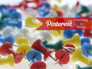 Pinterest is a popular visual discovery engine where 70 million people find inspiration for their interests. 79% of Pinterest users are female and content from businesses plays a major role in helping users pursue their passions. For businesses, Pins should be helpful, beautiful, and actionable to drive sales. Helpful Pins provide informative descriptions with clear instructions or tutorials. Beautiful Pins use high-quality, vertically-oriented images in a consistent theme. Actionable Pins include links and details to inspire users to take action.