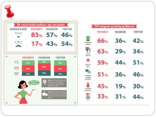 Pinterest, launched in 2009, is a visual social networking platform that allows users to share and curate images and videos through 'pinning' to themed boards. It rapidly grew to become one of the largest social networks, reaching over 11 million unique users within two years and introducing features such as business accounts and 'rich pins' to enhance user engagement and commerce potential. With strong consumer engagement, Pinterest is particularly effective for driving sales, attracting a diverse audience, and receiving notable awards for its design and functionality.