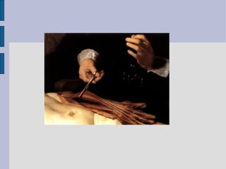 DOCUMENTACIÓ GENERAL: TÍTOL: La lliçó d'anatomia del professor Tulp AUTOR : Rembrandt (1606-1669) CRONOLOGIA : 1632 ESTIL : Barroc TÈCNICA : oli SUPORT :tela; 1,69 mts (alt)X 2,16 mts (llarg) LOCALITZACIÓ ORIGINAL: seu social dels cirurgians d'Amsterdam LOCALITZACIÓ ACTUAL : Mauritshuis, a l'Haia TEMA : el professor Tulp practica una dissecció al braç d'un cadàver.