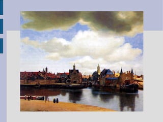 DOCUMENTACIÓ GENERAL: TÍTOL: Vista de Delft AUTOR : Jan Vermeer (1632-1675) CRONOLOGIA : 1658-1660 ESTIL : Barroc holandès TÈCNICA : oli SUPORT :tela; 98,5 cm (alt)X 1,18 mts (llarg) LOCALITZACIÓ ACTUAL : Mauritshuis, a l'Haia TEMA : vista de la ciutat de Delft, on va néixer, viure i morir l'artista.