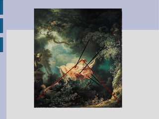 DOCUMENTACIÓ GENERAL: TÍTOL: El gronxador (o El feliç caprici del gronxador) AUTOR : J. Honoré Fragonard (1732-1806) CRONOLOGIA : 1766 ESTIL : Rococó TÈCNICA : oli SUPORT : tela; 83 cm (alt); 66 cm (llarg) LOCALITZACIÓ ACTUAL : Wallace Collection, Londres TEMA : una noia és impulsada en un gronxador per un home madur mentre que un home jove l'observa.