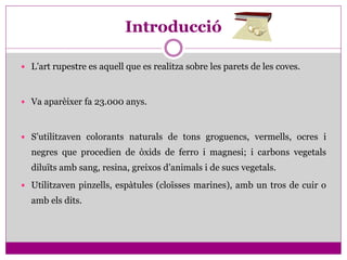 L’art rupestrees aquell que es realitza sobre les parets de les coves.