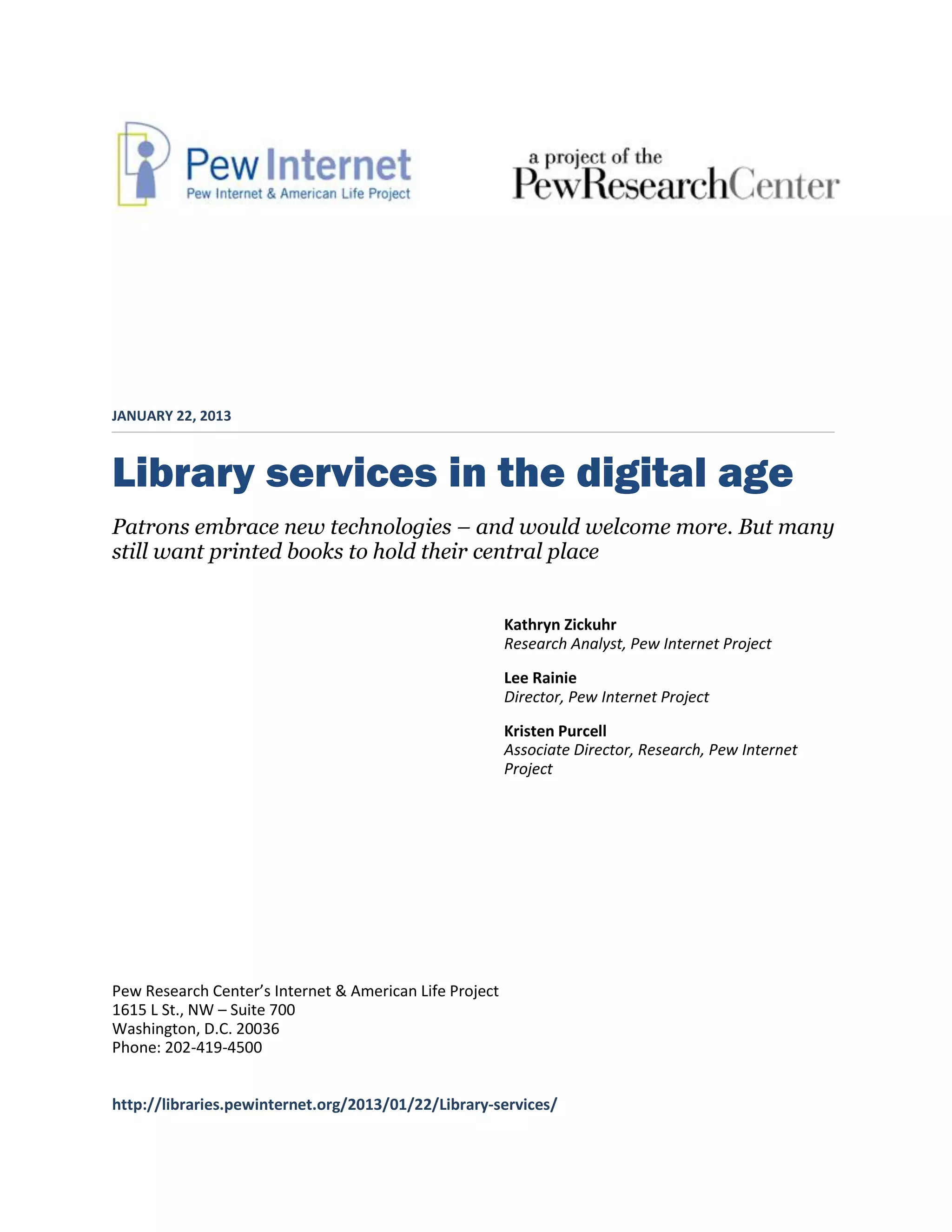- While most see libraries as important community resources, many don't know the full range of current services. Some patrons report increasing use