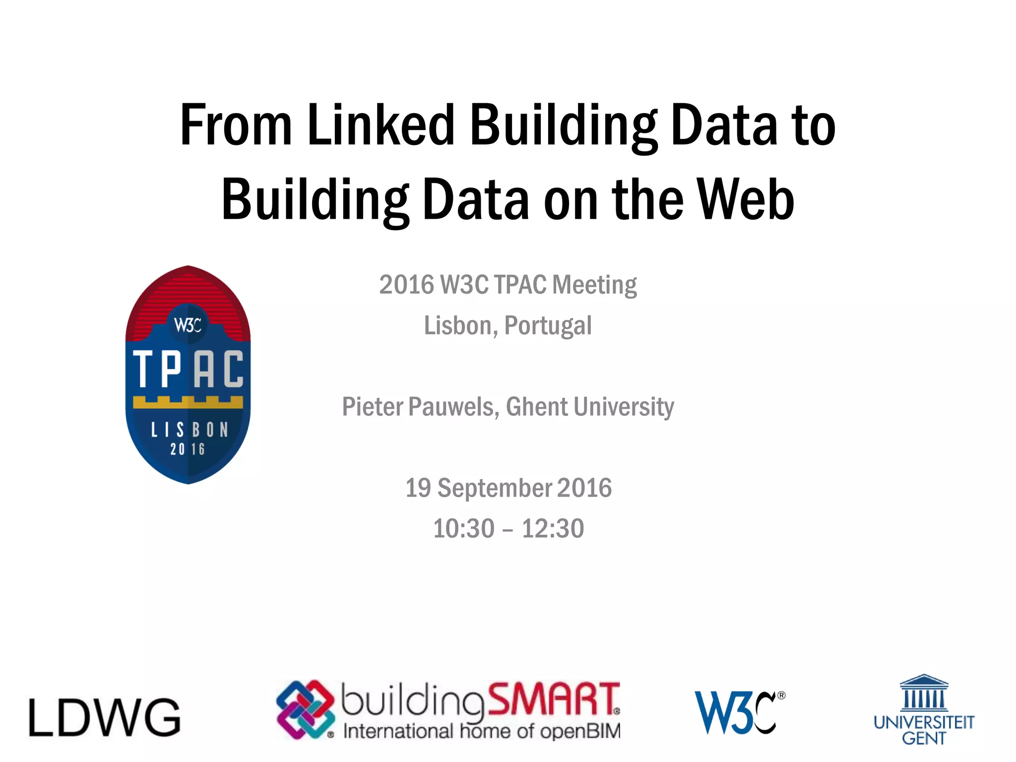 The document discusses the development of linked data in the building industry, focusing on the IFCOWL ontology as a standard for semantic web applications that utilize IFC data. It emphasizes the importance of collaboration between BIM experts and organizations like BuildingSMART to establish use cases and requirements for linked data applications throughout the building lifecycle. Additionally, the document mentions upcoming initiatives and the need for further evaluation of the IFCOWL proposal as a recommended standard.