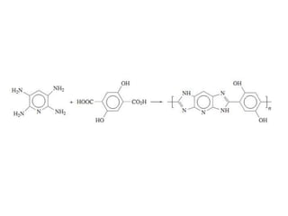 M5 is a new high-performance fiber produced by Akzo-Nobel laboratories. M5 is a rigid-rod polymer called PIPD or poly{2,6-diimidazo[4,5-β:4`,5`-ε]pyridinylene-1,4-(2,5-dihydroxy)phenylene}. M5 fiber is prepared through condensation polymerization of tetraaminopyridine and dihydroxyterephthalic acid using diphosphorus pentoxide. The polymer mixture is then heated and extruded to form brightly blue M5 fibers, which are washed to remove residual chemicals.