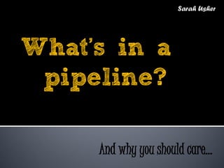 The document discusses the software pipeline process, highlighting the importance of build, test, and deployment phases in achieving continuous delivery. It outlines various types of tests, including automated and user acceptance tests, and emphasizes the roles of builders, deployers, and testers in this process. The content also touches upon agile and DevOps methodologies and includes references to related literature.