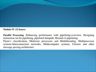 Pipelining is a technique used in processors to divide instruction processing into segments, allowing multiple instructions to be executed concurrently akin to an assembly line. The execution is segmented into stages such as fetch, decode, execute, memory access, and write back, improving overall throughput but introducing potential hazards like structural and data hazards. Solutions to these hazards include reordering instructions, using hardware techniques like forwarding, and implementing branch prediction strategies to maintain efficiency.