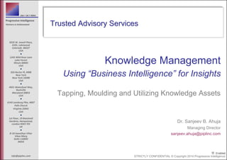This document provides an overview of knowledge management strategies and technologies. It discusses challenges such as capturing both explicit and tacit knowledge. A recommended approach is a staged knowledge initiative starting with pilot programs and proofs-of-concept before full production. Key considerations for a KM system include the target application area, user expectations, return on investment, and business constraints. A comprehensive KM strategy must address long-term goals, relevant knowledge domains, enabling processes, competencies, and technology investments. The document lists various technologies that can be used to analyze data, build knowledge bases, support decision making, enable collaboration, and visualize information.
