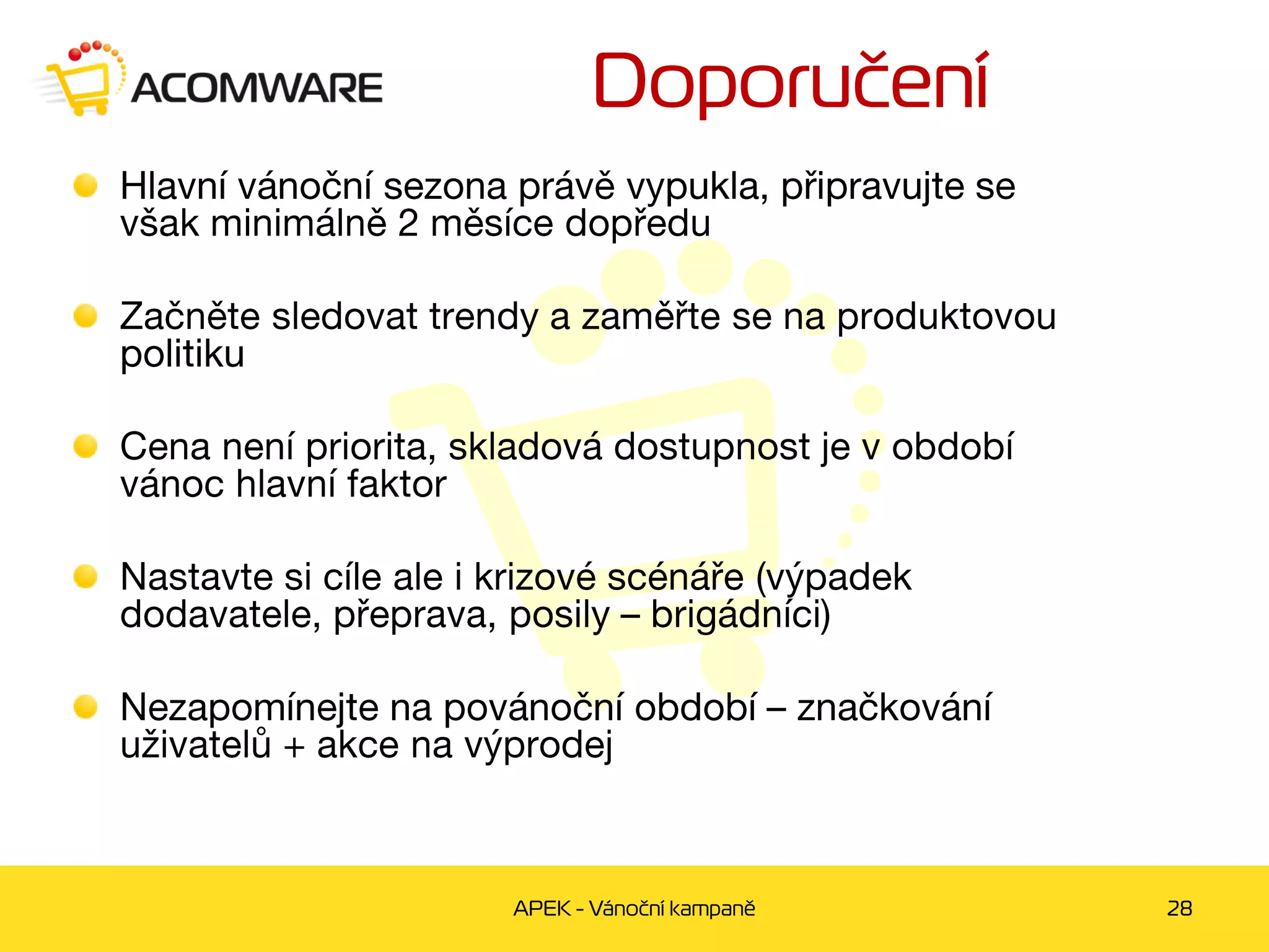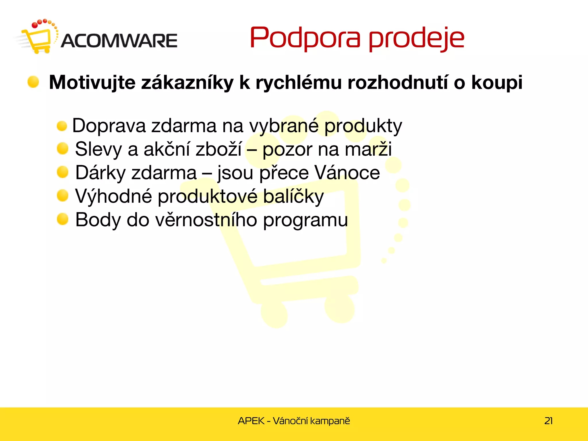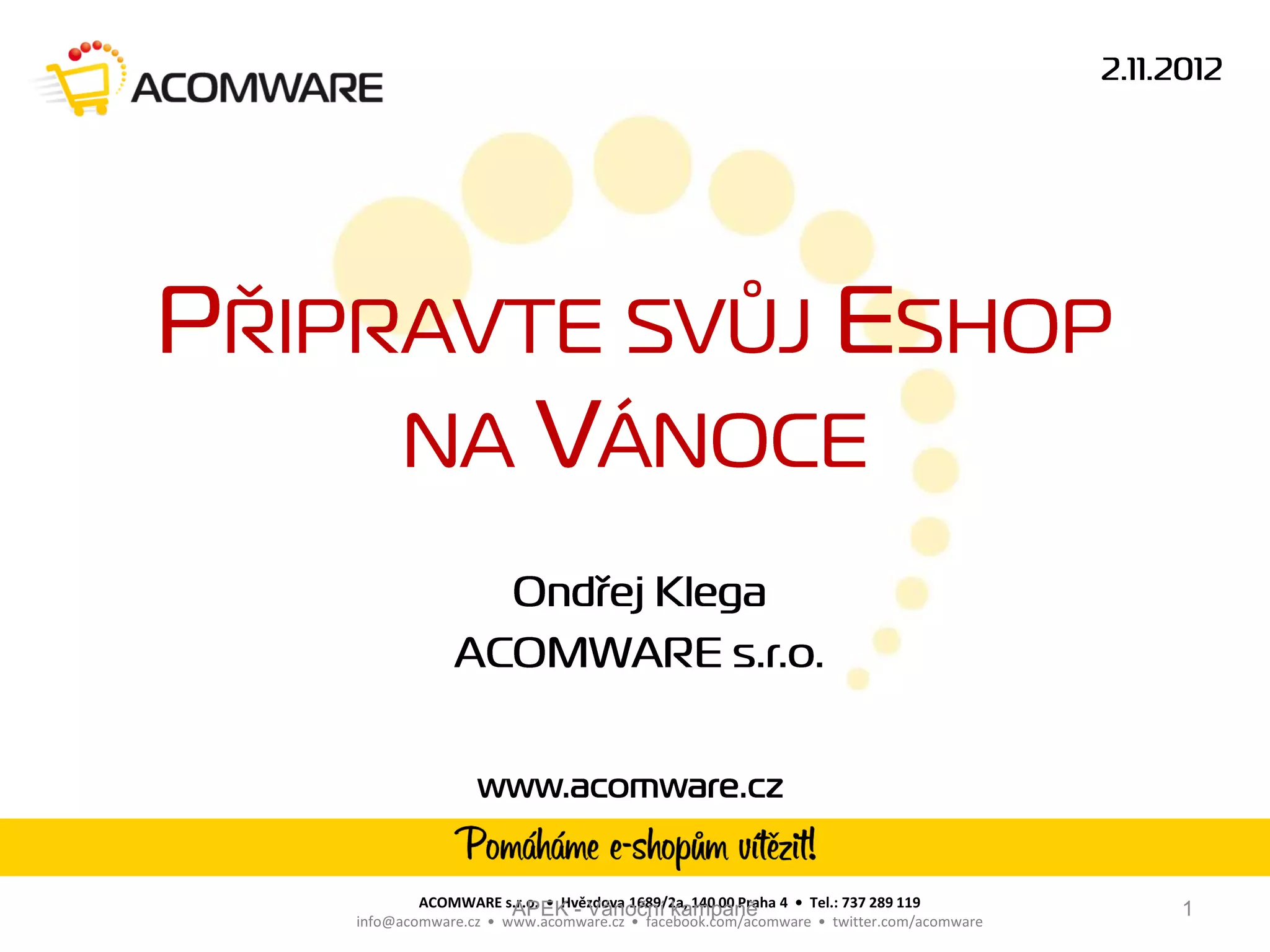 Připravte e-shop na Vánoce - workshopOPEN - 1. ACOMWARE s.r.o. • Hvězdova 1689/2a, 140 00 Praha 4 • Tel.: 737 289 119
