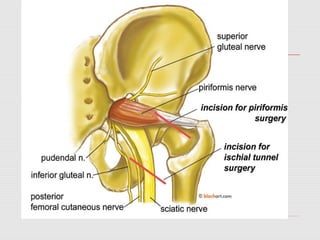 Piriformis syndrome, often causing sciatica, is frequently overlooked in patients undergoing lumbar MRI scans seeking the source of buttock and leg pain. The condition can be diagnosed with simple physical tests and is generally less invasive to treat compared to herniated lumbar disks, yet many physicians are uncertain on how to manage it effectively. The document emphasizes the need for awareness and proper diagnosis to prevent unnecessary surgeries for patients misdiagnosed with spinal issues.