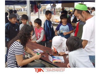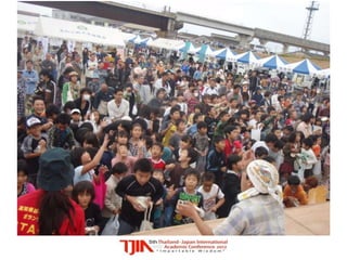 This document describes public awareness campaigns and education programs in the Monobe River in Japan. It discusses the environmental degradation of the river from landslides and muddy water runoff. It then outlines a multi-stakeholder approach involving the government, local organizations, and education institutions to address these issues. This includes raising public awareness through education programs for children, festivals celebrating the river, and encouraging new agricultural practices to reduce runoff. The approach aims to integrate stakeholder interests, have shared objectives, and involve long-term commitment to improve the river's ecosystem and water quality.
