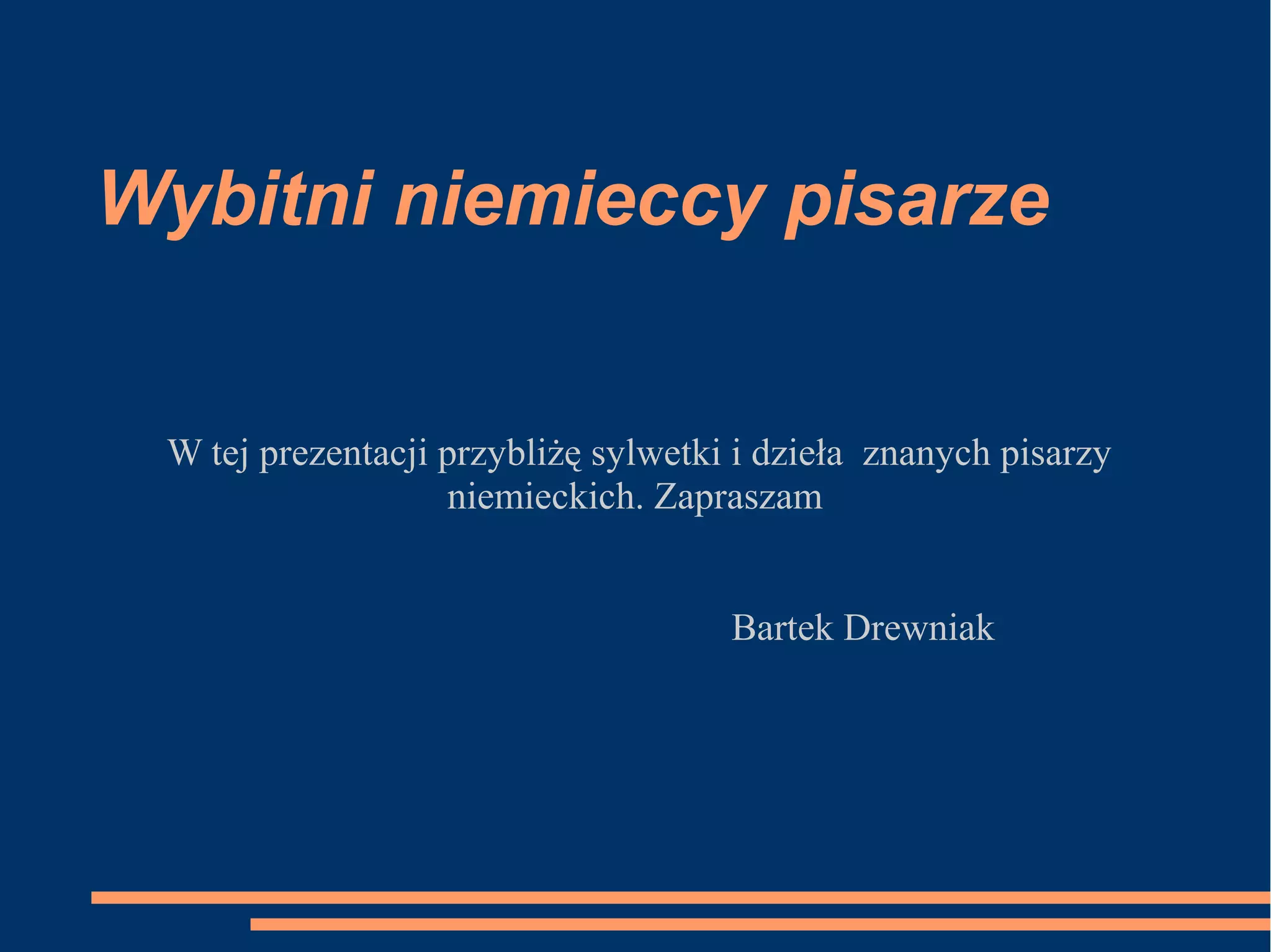 W tej prezentacji przybliżę sylwetki i dzieła znanych pisarzy