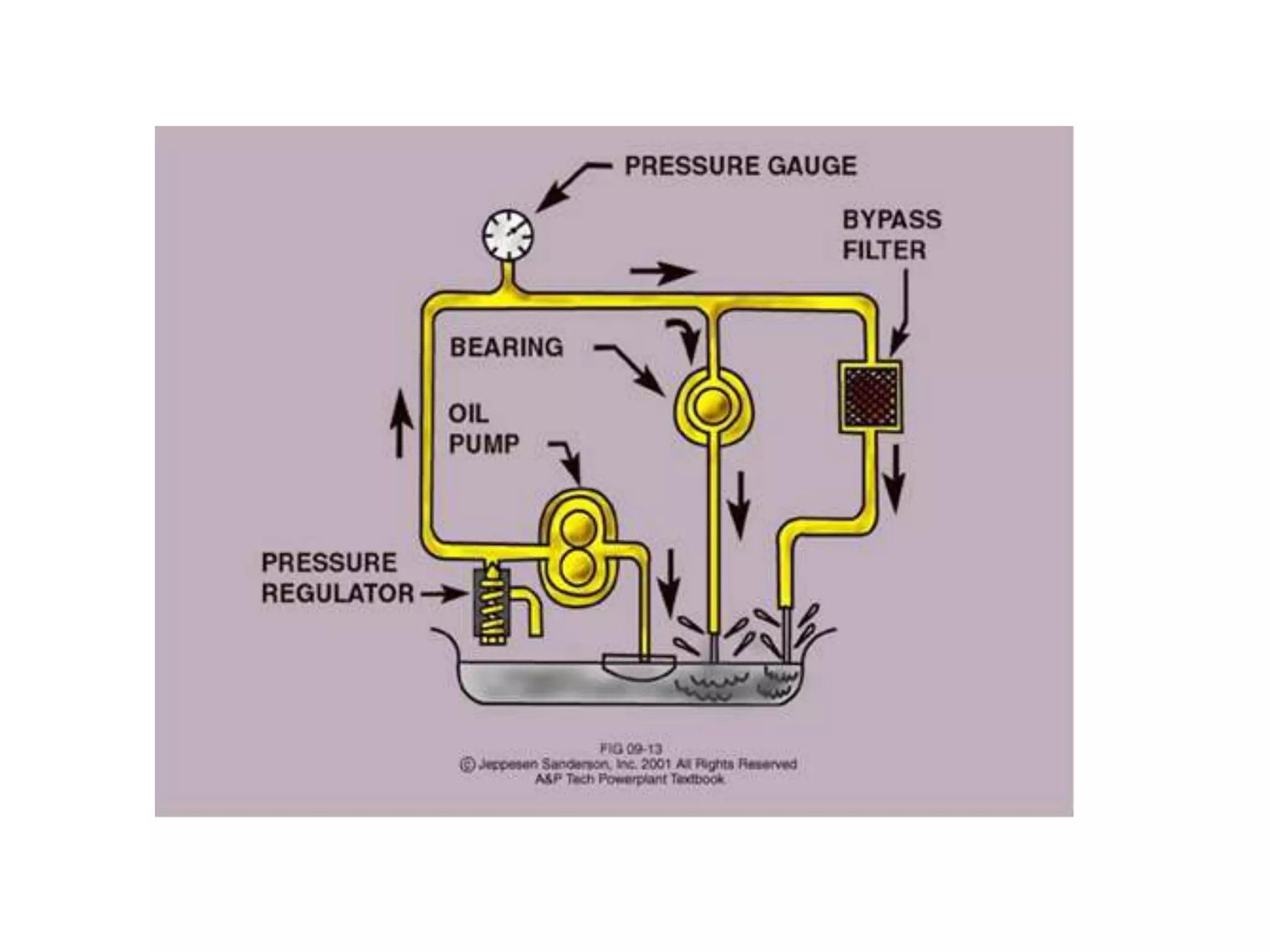 Lubricating oil is essential for piston engines to reduce friction and wear between moving parts. It also removes heat from the engine. There are two main types of lubrication systems - wet sump and dry sump. Wet sump systems carry the oil in the engine crankcase, while dry sump systems store oil externally. Pressure lubrication is the primary method used, relying on pumps to circulate pressurized oil through the engine. Filters help clean the oil before it reaches critical components.
