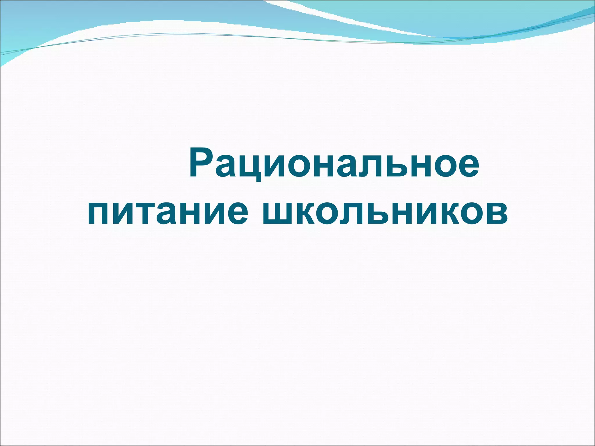 Документ обсуждает важность рационального питания для школьников, утверждая, что здоровое питание способствует росту, умственной активности и сохранению здоровья. Описаны основные компоненты пищи, такие как углеводы, жиры и белки, а также витамины и микроэлементы, необходимы для удовлетворения потребностей учащихся. Приведены рекомендации по питанию, акцентирующие разнообразие, умеренность и избегание вредных привычек.