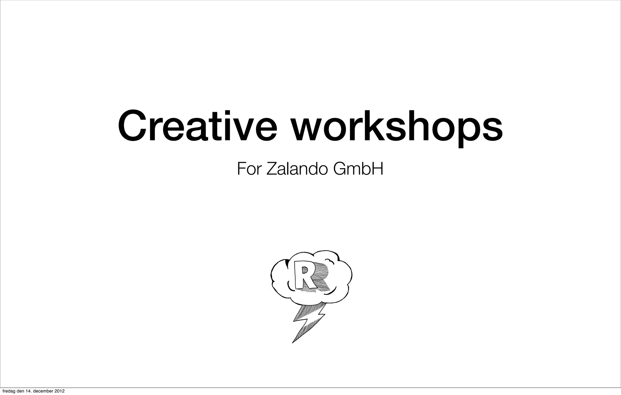The document discusses plans for creative workshops at Zalando GmbH. It aims to unlock employees' creative potential to improve the company and keep it at the forefront of the market. The workshops would teach collaborative problem-solving and new work methods to help employees and Zalando adapt to constant technological change. The goal is to increase co-creation across departments and conversion rates while making Zalando a more innovative organization.