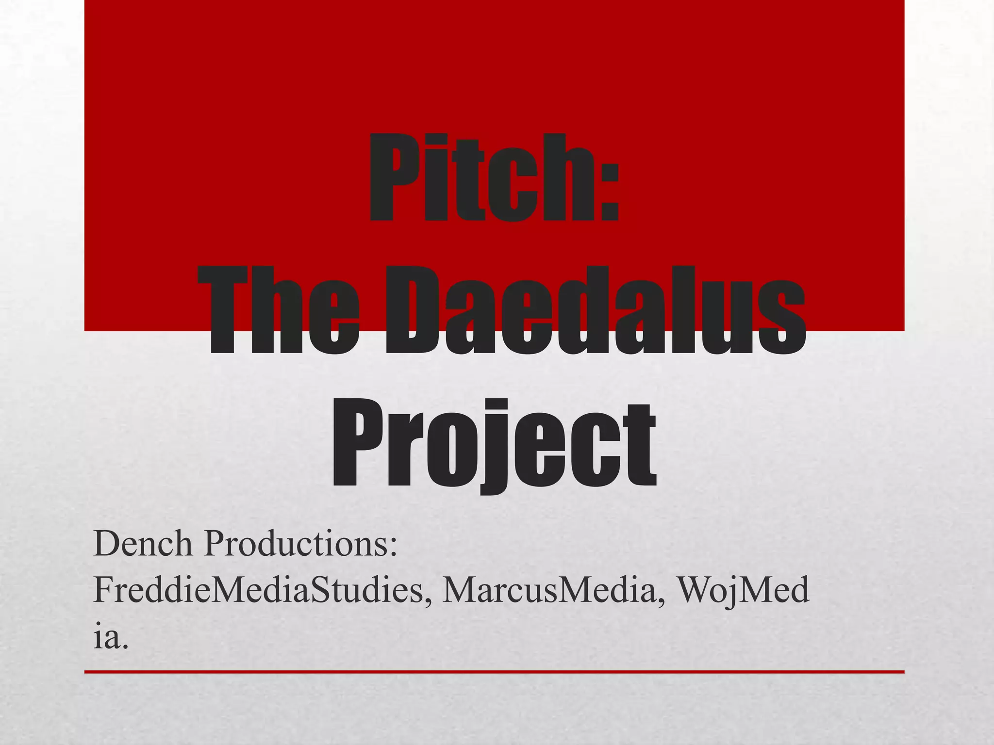 The document provides information about the media group Dench Productions and their thriller film project called "The Daedalus Project". The group is composed of three students - Woj, Marcus, and Freddie. They were inspired by films like American Gangster and Shifty. The story follows a middle-class man named Zach Moore who gets involved in the drug trade and sees the downsides of that lifestyle. The group plans to market the film cheaply online and at festivals to appeal to younger audiences. Their goal is to challenge stereotypes about crime only affecting certain demographics.