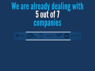 The document discusses a mobile plan nominated as the 'best app web' of 2012, featuring 400 minutes, unlimited internet, and 100 SMS. It indicates plans for a new mobile contract in Chile next year, focusing on a specific market size. Key individuals mentioned include David, Germán, José Alejandro, and Catalina.