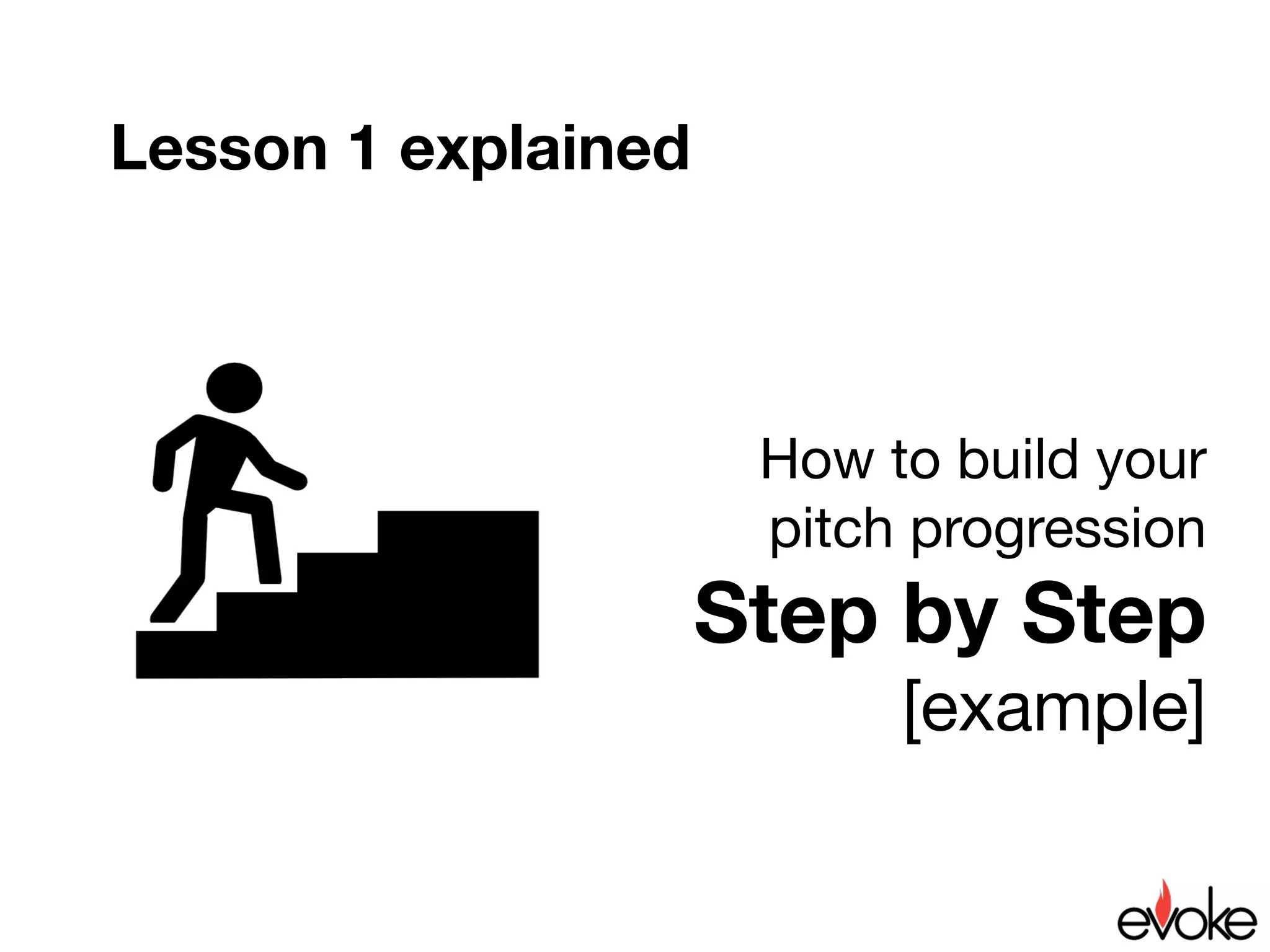 The document outlines steps to build an effective pitch progression. It recommends starting with identifying a single key message in 20 words or less. Then hook the audience with a visual, emotion, or teaser. Next, build on the hook by clarifying the concept using examples, data, analogies or stories. Anticipate objections and overcome them with 1-2 facts or figures. Finally, provide next steps such as answering questions or asking for help. An example pitch progression is then shown applying these steps over 8 seconds.
