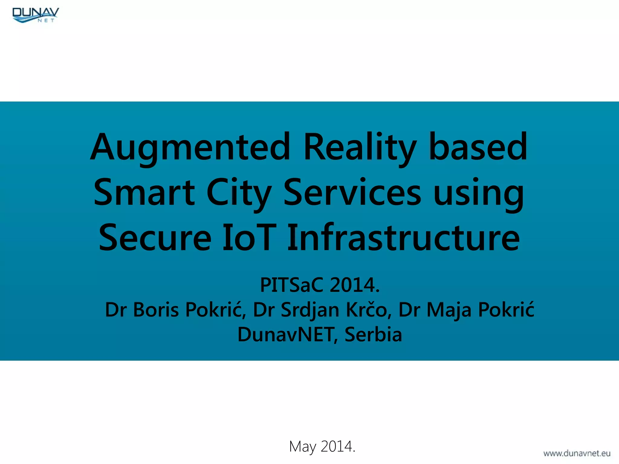 The document outlines a smart transportation service called BusNet, utilizing augmented reality (AR) to provide travelers with essential information like bus arrival times and air quality in Novi Sad, Serbia. It emphasizes security measures needed to protect sensitive user data and device communications within an Internet of Things (IoT) infrastructure. The project aims to enhance public transport usage while addressing security concerns and is part of the EU-funded Smartie initiative.