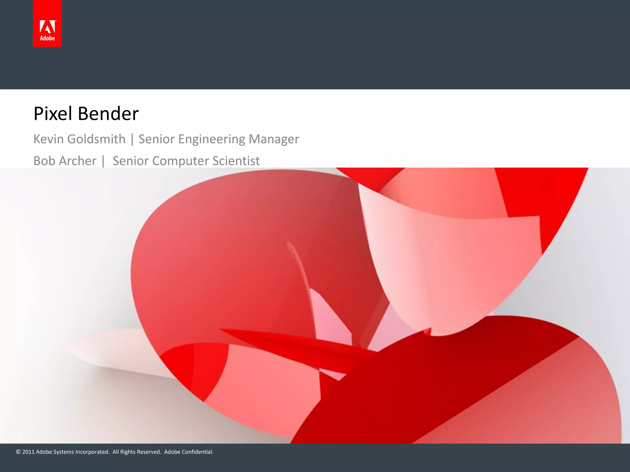 The document provides an overview of Pixel Bender, a domain-specific language developed by Adobe for image and video processing, targeting heterogeneous hardware. It details the structure of Pixel Bender kernels and graphs, including parameters, connections, and runtime scheduling for optimization. Additionally, it shares lessons learned in software development, emphasizing the importance of ease of programmability and just-in-time compilation.