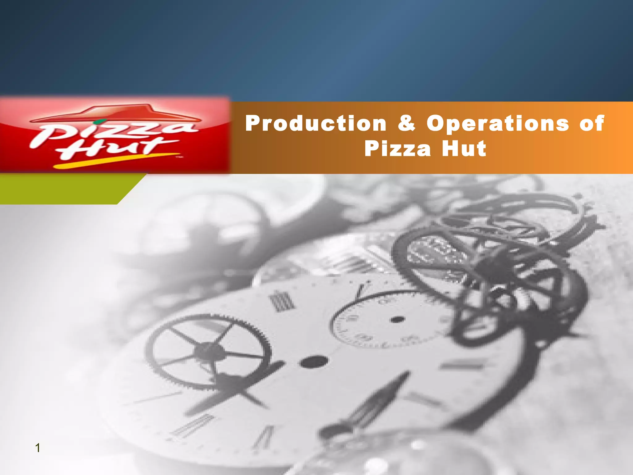 This document provides an overview of the production and operations of Pizza Hut, including: