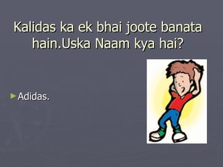 This document appears to contain a collection of riddles and jokes in Hindi/Urdu. It includes riddles about fish crying after one dies and increasing water levels, a bald man's hairs falling in love but not being able to marry under Indian law, and an elephant named "sparrow" killing a man. It also includes jokes about software versions named after Hindi words, a cricket player getting into college via sports quota, and wordplay on people's names.
