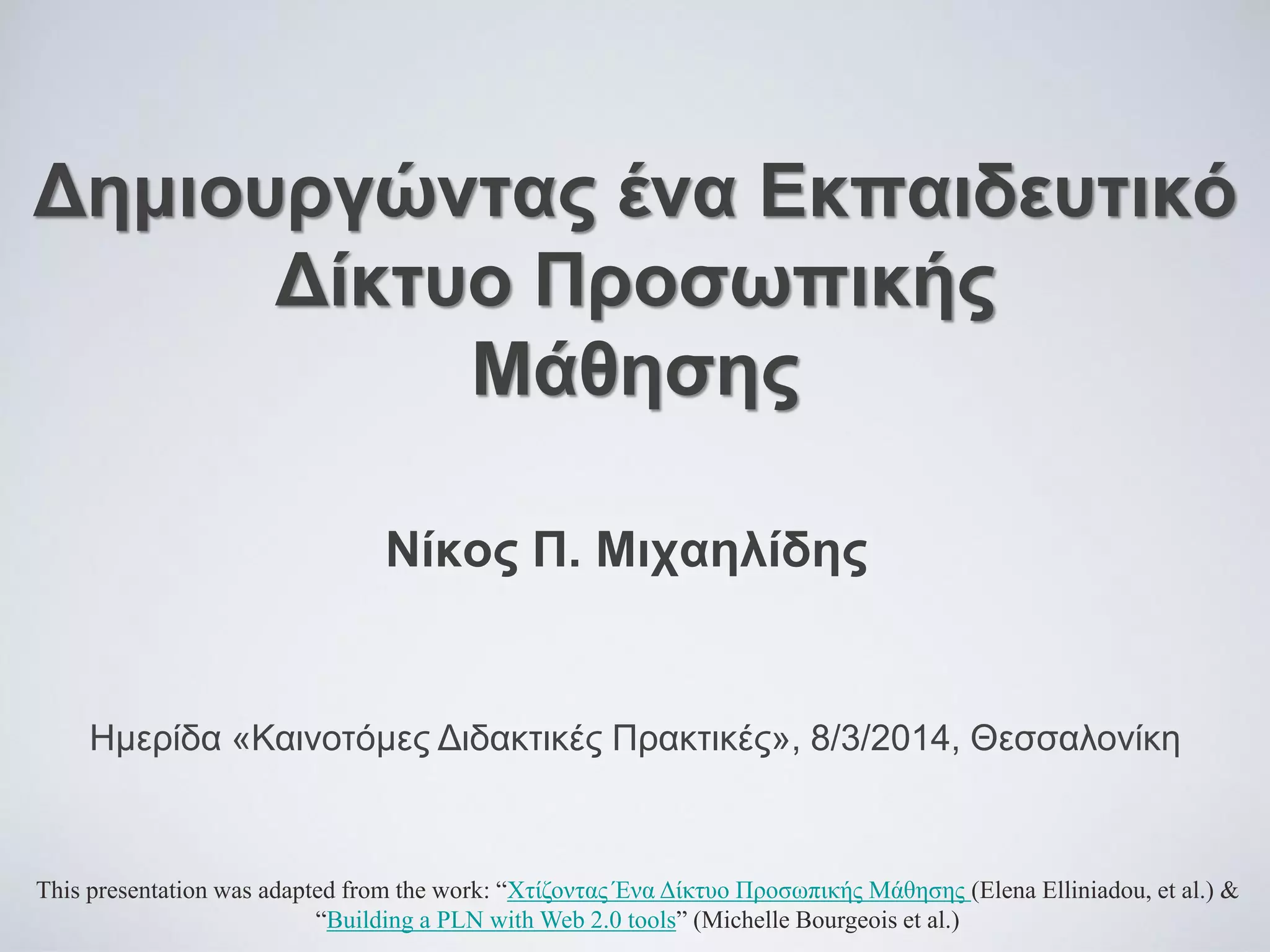This presentation was adapted from the work: “Χτίζοντας Ένα Δίκτυο Προσωπικής Μάθησης (Elena Elliniadou, et al.) &