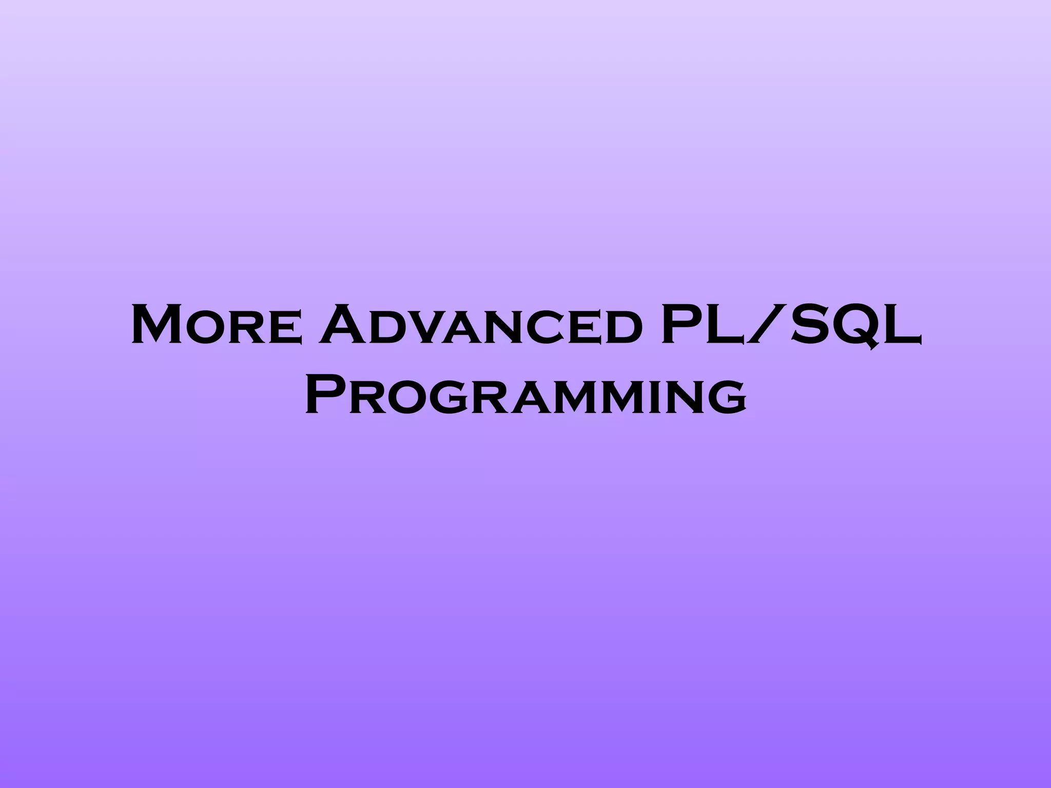 The document provides an overview of advanced PL/SQL programming concepts including:
