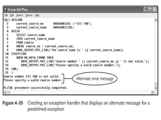 - Handling runtime errors through the use of predefined, undefined, and user-defined exceptions.