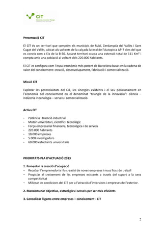 Objectiu: Definir i desenvolupar el posicionament del CiT per a la captació d’empreses i