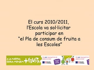 PLA DE CONSUM DE FRUITA A LES ESCOLES.