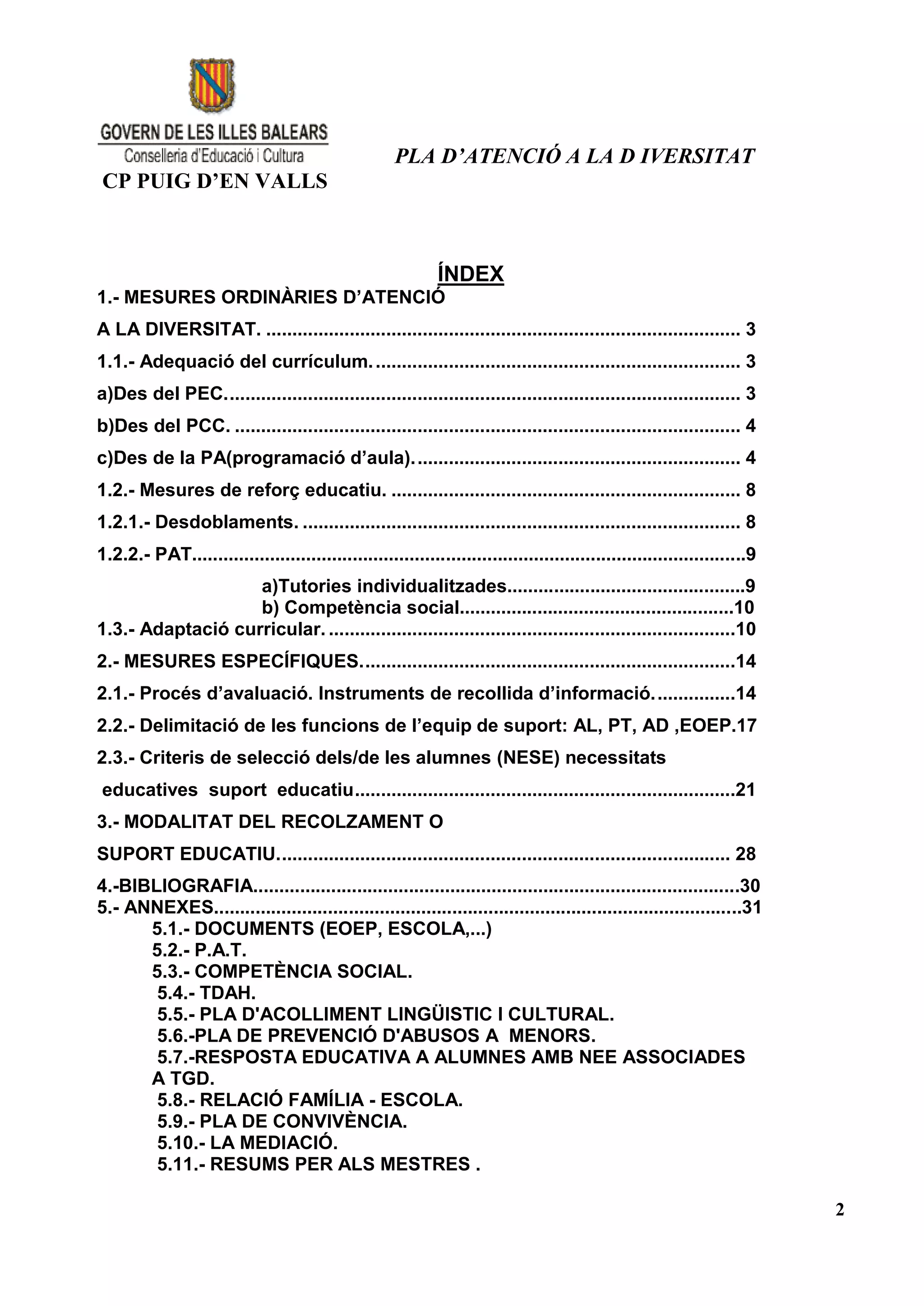 PLA D’ATENCIÓ ALA DIVERSITAT