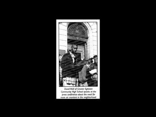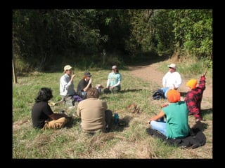 This document discusses place-based and community-based education approaches for sustainability education. It argues that these approaches help nurture citizens who understand current environmental issues, feel connected to their community, have problem-solving skills, and confidence to take action. Examples are provided of programs that connect learning to students' local communities and environments, give opportunities for students to investigate issues and potential solutions, and support students in taking informed action on issues. Research studies cited found that place-based education encourages environmental stewardship, helps students learn, energizes teachers, transforms school culture, and connects schools to communities.