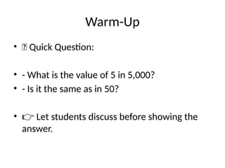 • - Pair Work: Identify each digit’s value in