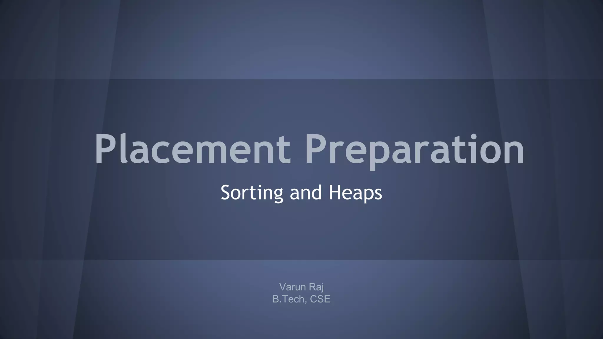 This document provides an overview of sorting algorithms including selection sort, bubble sort, insertion sort, merge sort, and heapsort. It discusses the time and space complexity of each algorithm, with merge sort having the best time complexity of O(n log n). Code examples and exercises are provided to help understand how each algorithm works. The goal is to help students learn common sorting techniques needed for coding interviews and problems.