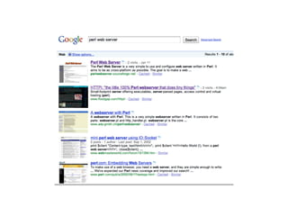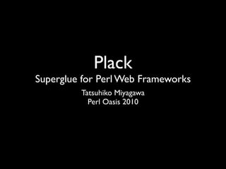 Plack provides a common interface called PSGI (Perl Server Gateway Interface) that allows Perl web applications to run on different web servers. It includes tools like Plackup for running PSGI applications from the command line and middleware for adding functionality. Plack has adapters that allow many existing Perl web frameworks to run under PSGI. It also provides high performance PSGI servers and utilities for building and testing PSGI applications.