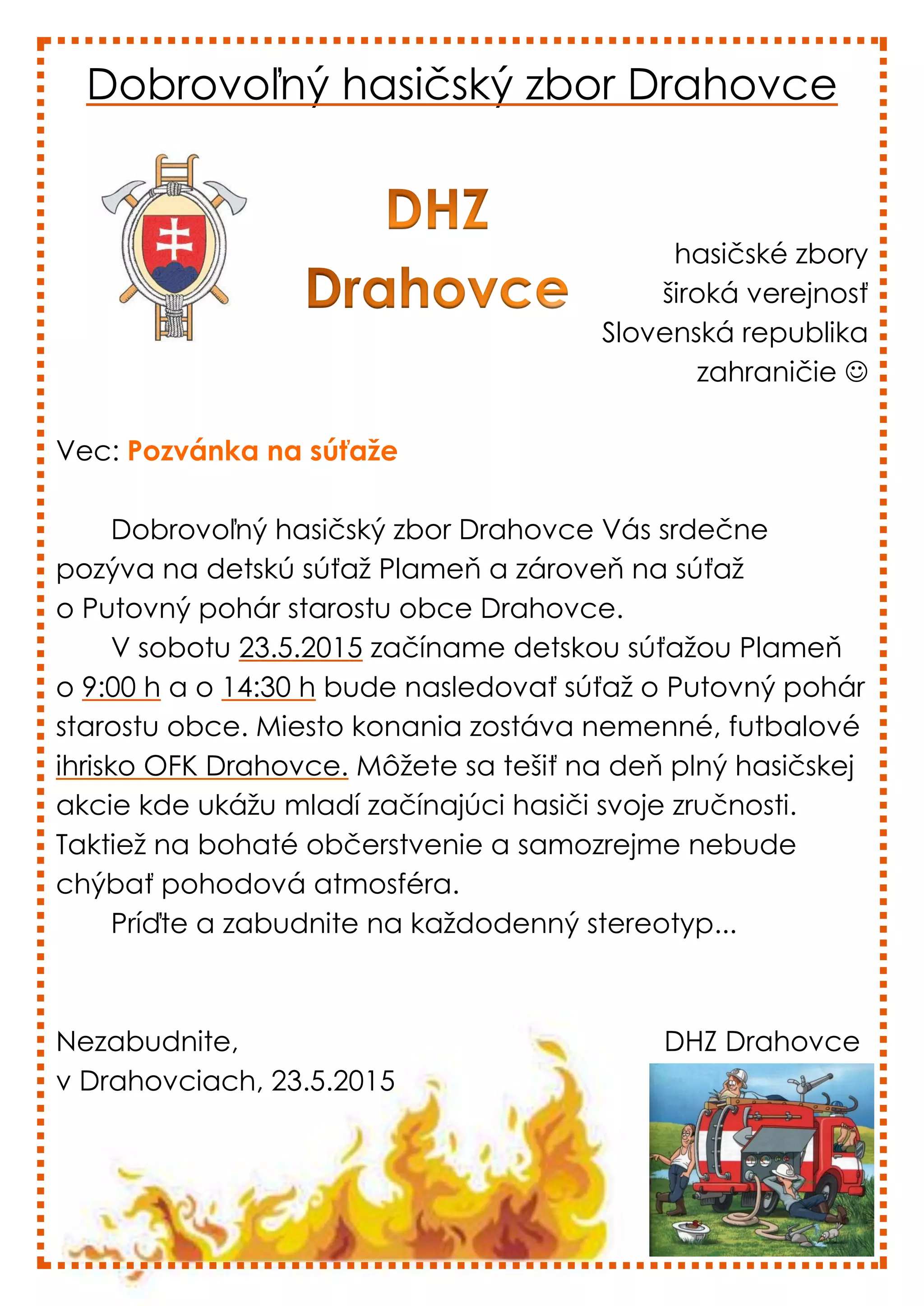 Dobrovoľný hasičský zbor Drahovce Vás srdečne