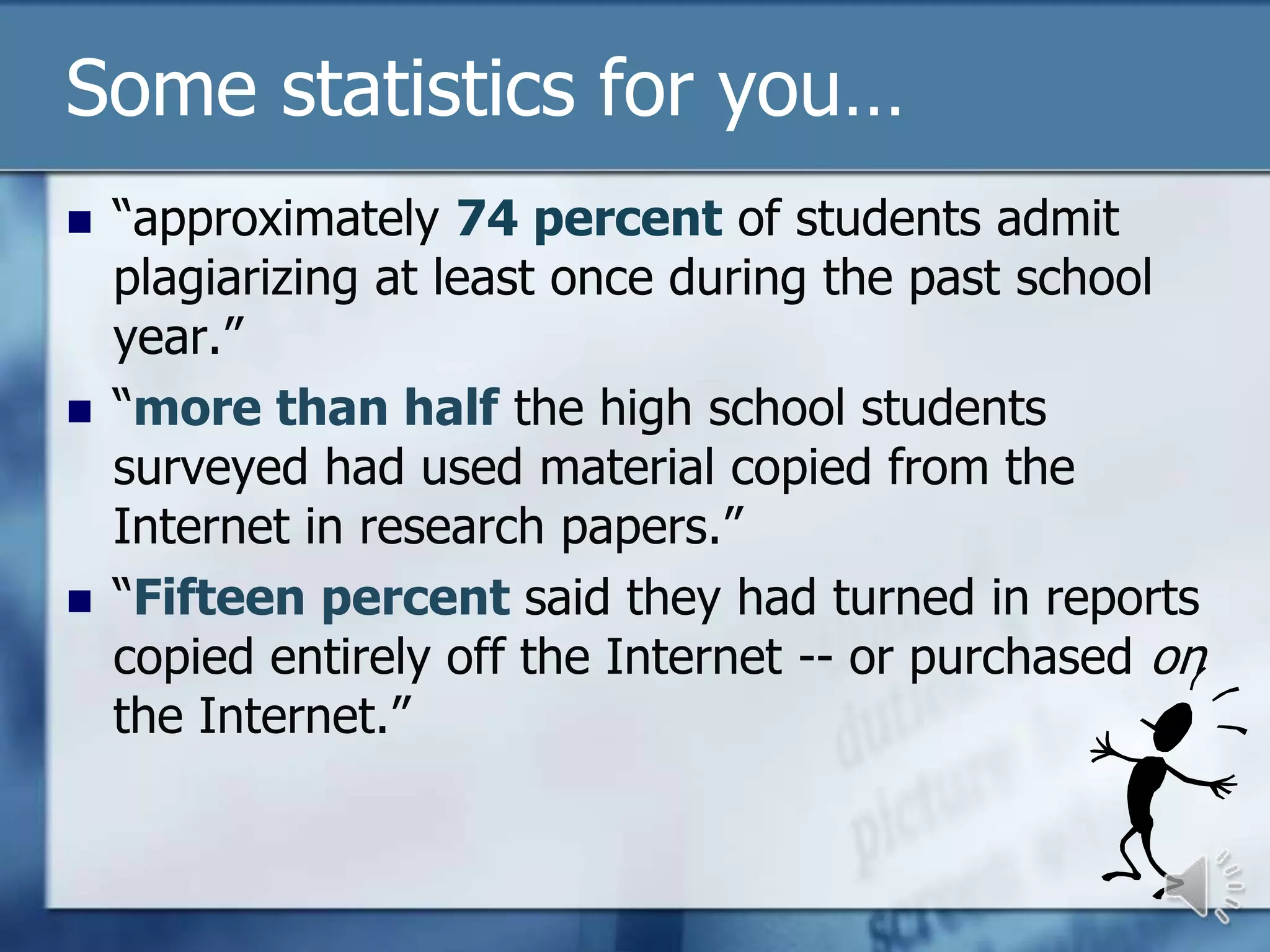 This document discusses internet plagiarism in classrooms. It provides statistics showing that many students admit to plagiarizing in their schoolwork. The document explores reasons for both intentional and unintentional plagiarism. It then offers strategies teachers can use to prevent plagiarism, such as ensuring students understand proper citation practices and giving unique research topics. The document also discusses resources teachers can use to detect plagiarism, such as online plagiarism checking tools and analyzing students' writing styles.